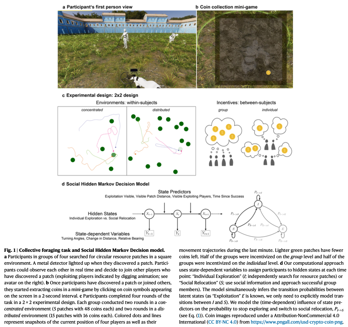 Deffner, D., Mezey, D., Kahl, B., Schakowski, A., Romanczuk, P., Wu, C. M., & Kurvers, R. H. J. M. (2024). Collective incentives reduce over-exploitation of social information in unconstrained human groups. Nature Communications, 15(1), 2683. https://doi.org/10.1038/s41467-024-47010-3