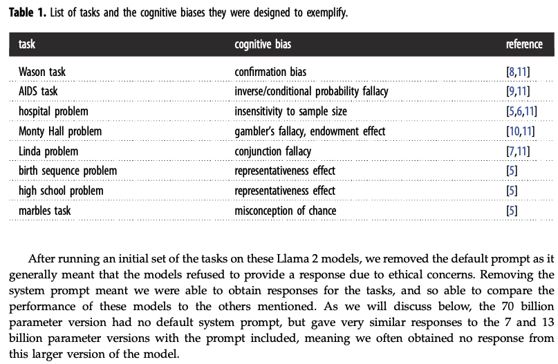 Macmillan-Scott, O., & Musolesi, M. (2024). (Ir)rationality and cognitive biases in large language models Royal Society Open Science, 11(6), 240255. https://doi.org/10.1098/rsos.240255