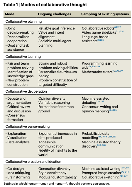 Burton, J. W., Lopez-Lopez, E., Hechtlinger, S., Rahwan, Z., Aeschbach, S., Bakker, M. A., Becker, J. A., Berditchevskaia, A., Berger, J., Brinkmann, L., Flek, L., Herzog, S. M., Huang, S., Kapoor, S., Narayanan, A., Nussberger, A.-M., Yasseri, T., Nickl, P., Almaatouq, A., … Hertwig, R. (2024). How large language models can reshape collective intelligence. Nature Human Behaviour, 1–13. https://doi.org/10.1038/s41562-024-01959-9