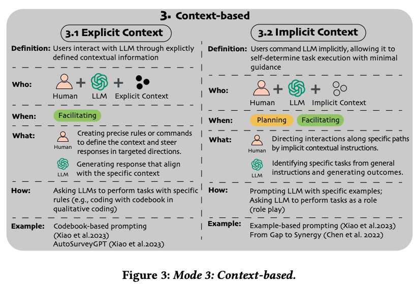 Gao, J., Gebreegziabher, S. A., Choo, K. T. W., Li, T. J.-J., Perrault, S. T., & Malone, T. W. (2024). A Taxonomy for Human-LLM Interaction Modes: An Initial Exploration. Extended Abstracts of the CHI Conference on Human Factors in Computing Systems, 1–11. https://doi.org/10.1145/3613905.3650786